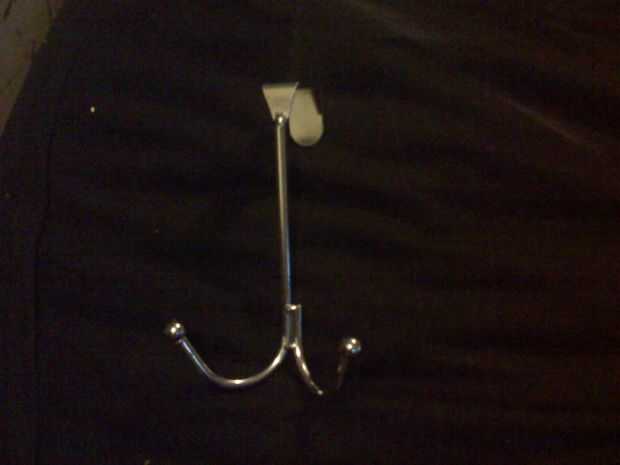 Acabo de poner el gancho en la parte superior de la madera y se inclinó la madera para arriba contra la pared. Las correas se cernía sobre dos ganchos y me ajustó las correas para que la cabeza repose sobre un gancho.