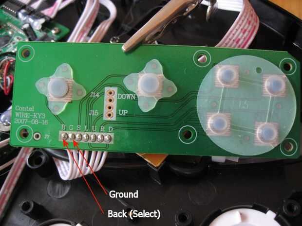Vas a tener que soldar los cables a estos dos puntos, la tierra y el botón back/seleccionar.