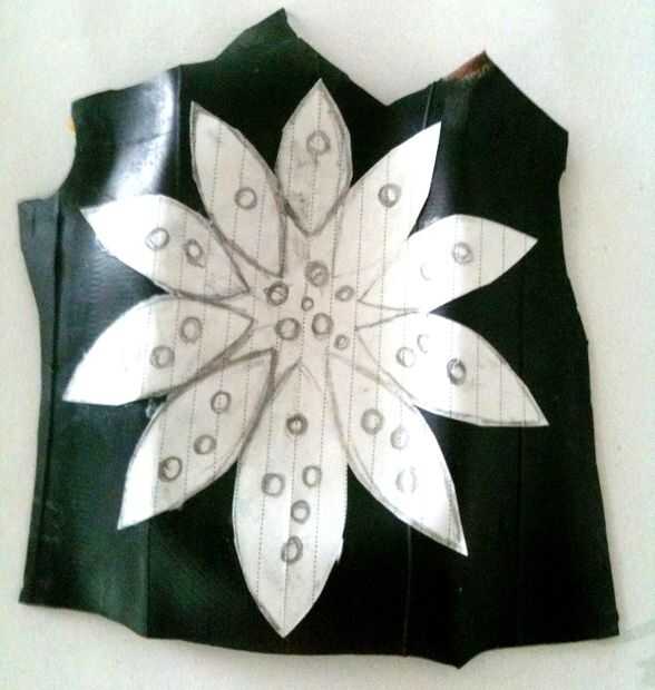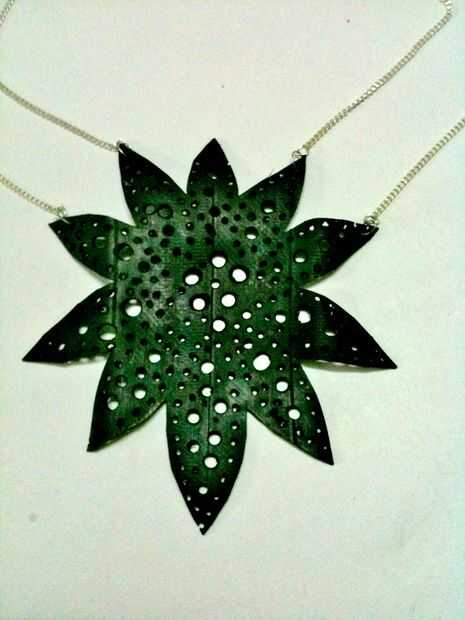 tomar 2 longitudes iguales de cadena... doblar una cadena y acoplar a las hojas como se muestra en la imagen... ahora hacer lo mismo para el otro lado con la otra cadena.