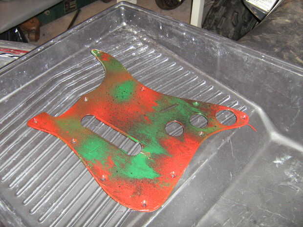 Usted debe dejarse con el protector de pick Puede rociar pintura y manchar con las toallas de papel Al final, tuve un spray puede de negro un poco una forma de pintura y dejar que el resto negro en él.