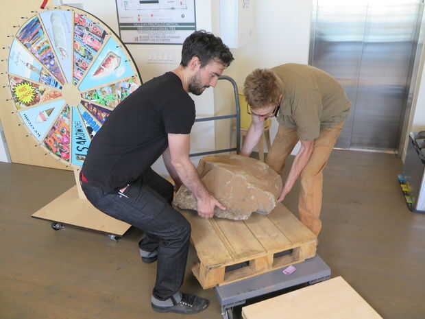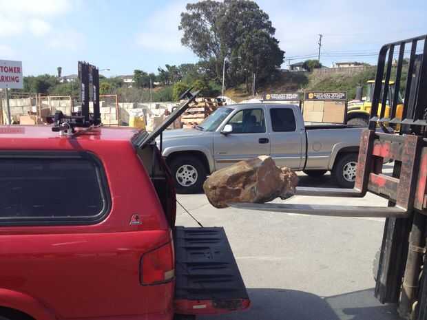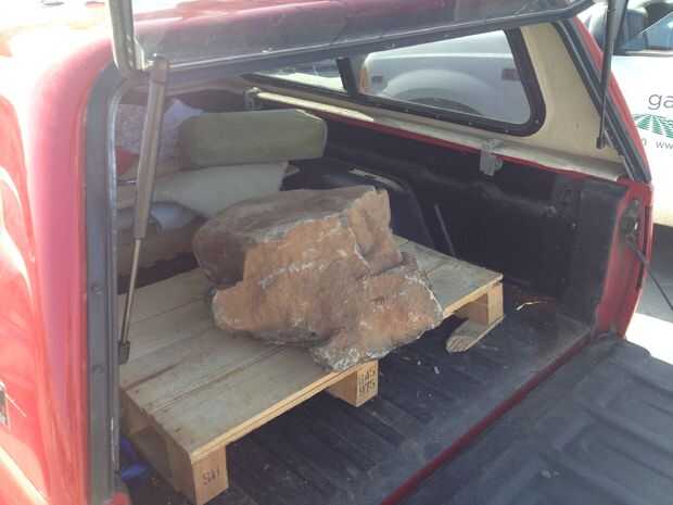 Una vez que la roca es lugar de descanso final (o provisional), utilizar una carretilla elevadora si se puede para sacar de la camioneta y poner directamente en algo que. Probablemente tendrá que ser capaz de moverse.