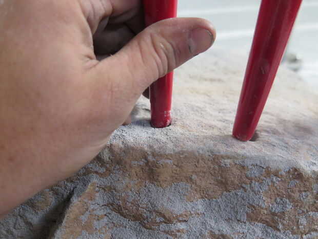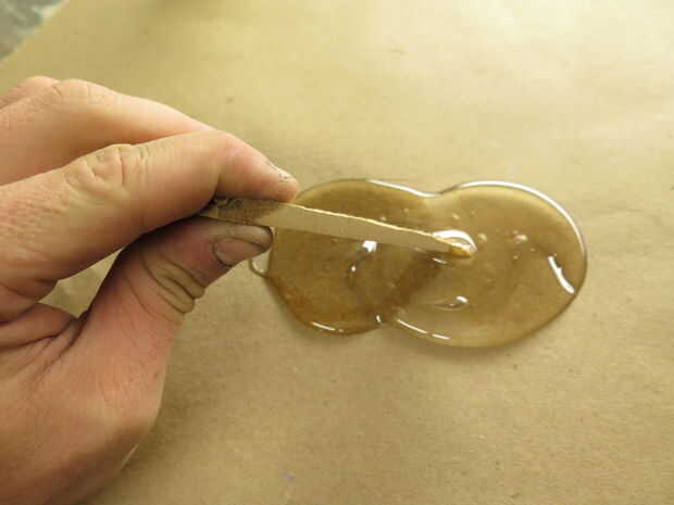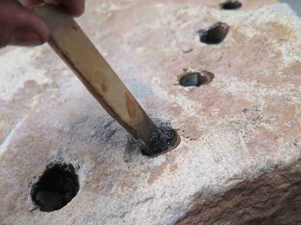 Utilice un palo o algún otro tipo de herramienta disponible para aplicar el epoxi en el interior de los agujeros. Tenga cuidado de no entrar demasiado en la piedra fuera de los agujeros porque probablemente se destacan un poco cuando se seca.