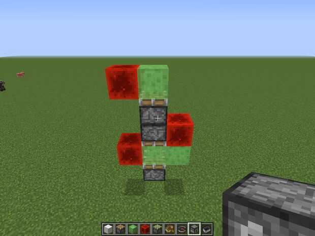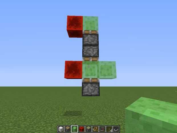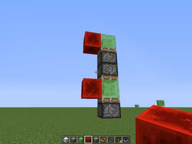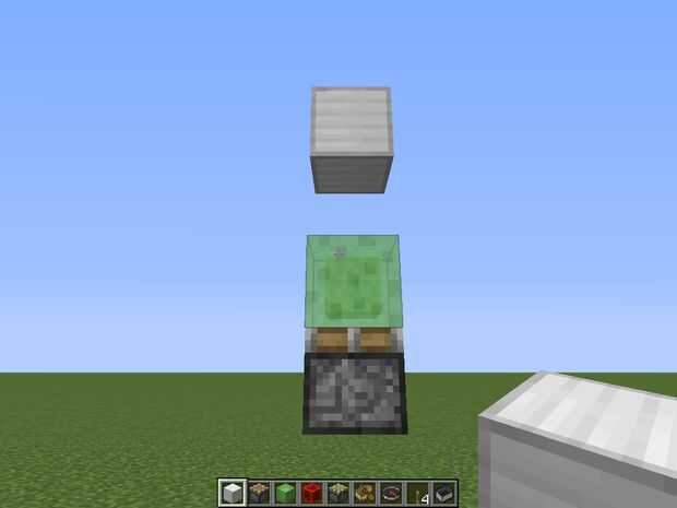 Añadir limo otro bloque con un bloque de redstone en la parte superior al lado del mayor bloque de limo