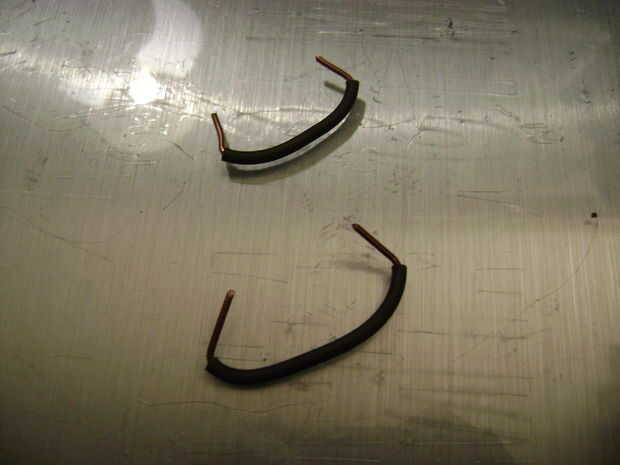 Cortar pequeños trozos de cable aislado e insertarlos en las partes negras de primer corte una pequeña hendidura y luego empuja el alambre de cobre expuesto a través de.