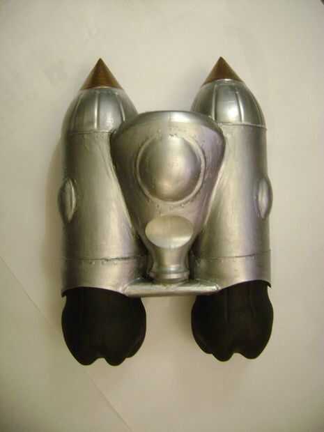 Crear las aletas de la parte inferior de cartón, pintarlas en plata y luego pegarlos en.