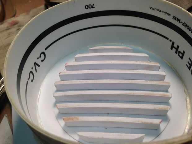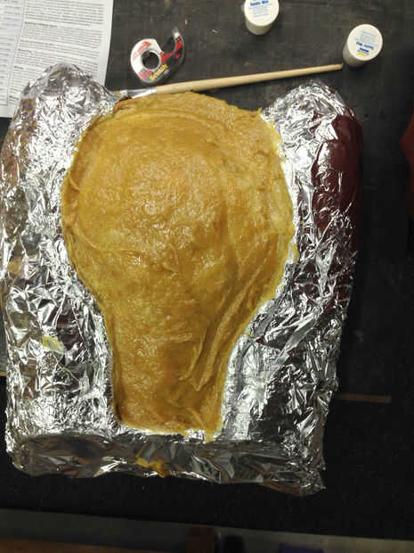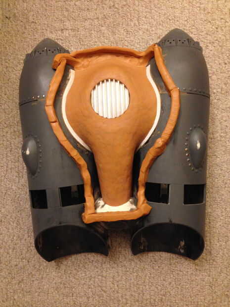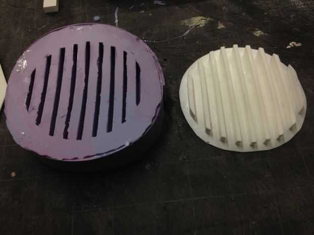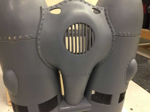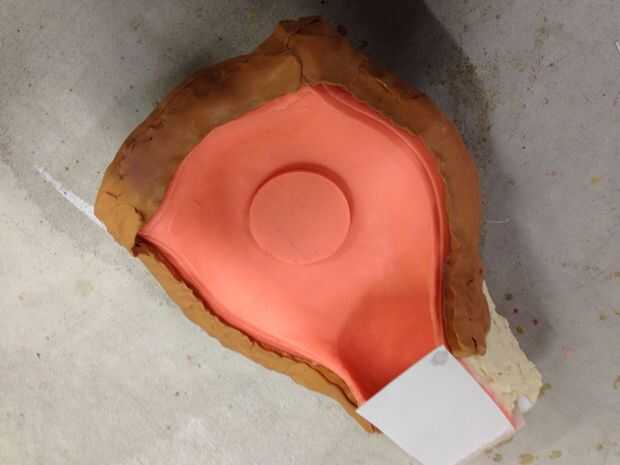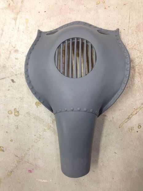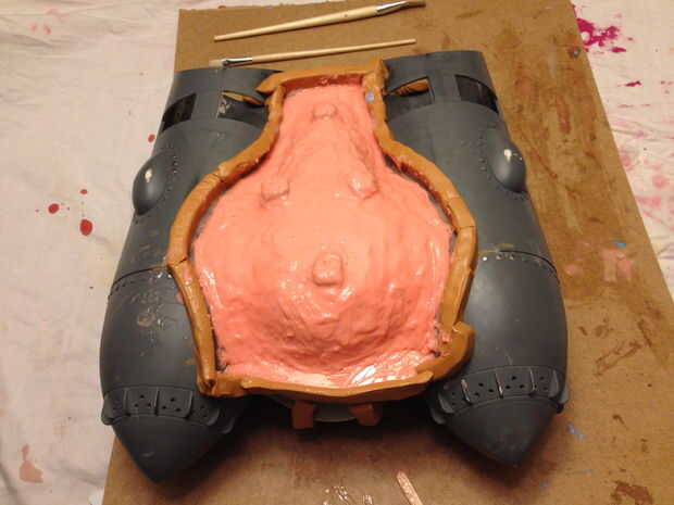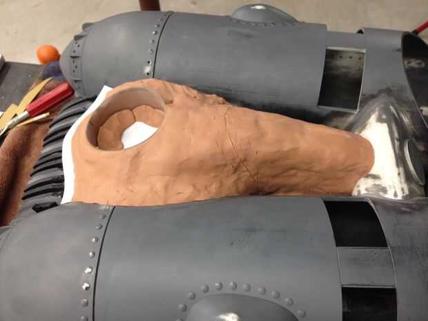 Esta sección de centro grande, orgánica resultó para ser el mayor desafío. Quería que esta obra ser desmontables para acceder a los entresijos de la manada. Esta necesaria construcción al maestro de derecho en la parte superior del cohete. Construido el maestro con arcilla no hardeing. Una vez que era perfecta, vertió un molde de goma sobre la sección de arcilla. Esto fue seguido por un molde rígido de la madre. Estas piezas entonces fueron quitadas de la manada y la arcilla se descartó. Este molde fue utilizado para granizados-elenco de la sección de centro de resina para ser instalado en el paquete final.