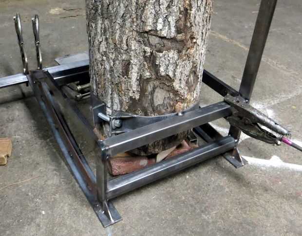 Aquí escenifica el tocón y la correa para el tubo cuadrado vigas transversales, añadiendo el tercer tubo detrás del tocón a atrapar en lugar de soldados. En este punto, eliminar el muñón llevaría más de aflojar el perno de la correa, la correa es esencialmente cosmética. Que está bien por mí, porque es bueno lookin'!