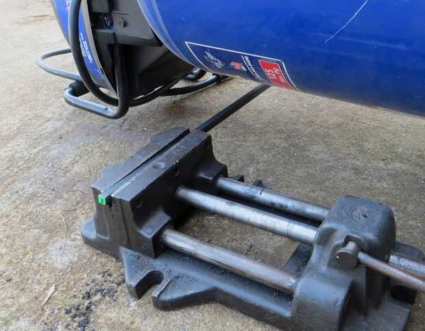 Usé un tanque del compresor y algunos barra cuadrada 3/8" para crear un esquema de respaldo. Cuando organizó en su lugar, decidí que no estaba funcionando.