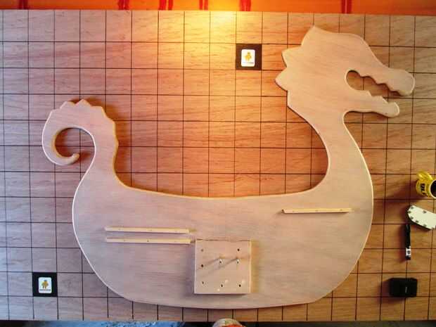 Puesto que el dragón tiene más peso en la parte delantera y no quería colocar la silla del centro, este estante fue construido como un soporte para fijar el balastro.