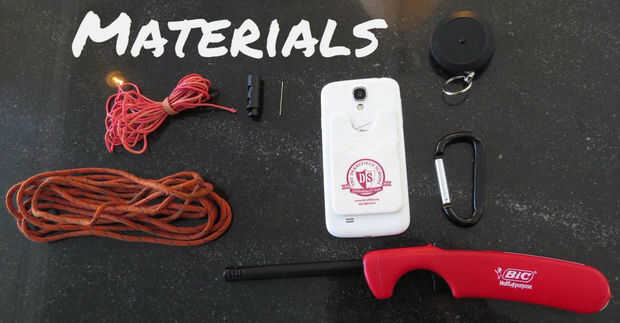 1. 8 pies de cable fiable (yo usé cordón de paracaídas)-- http://www.strapworks.com/Parachute_Cord_1_8_p/pc1...
