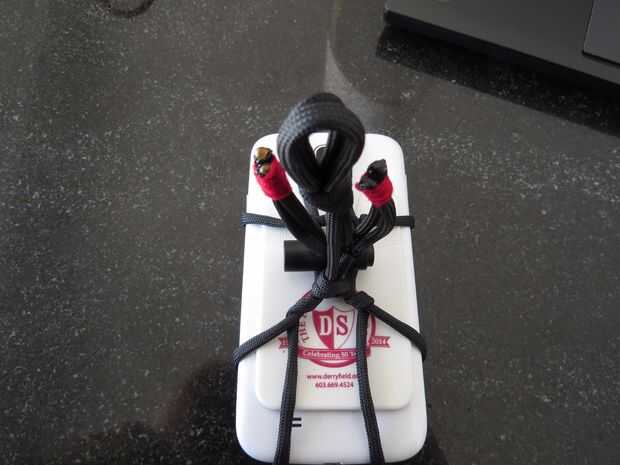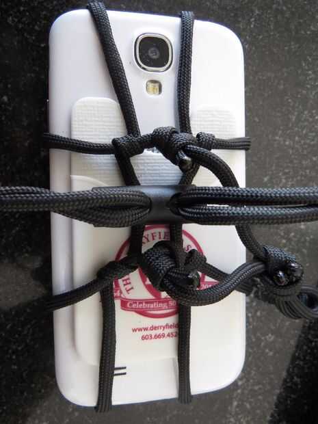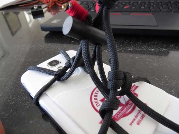 3. con la cerradura de la cuerda, apriete las líneas para que la envoltura quede ajustada en su teléfono.