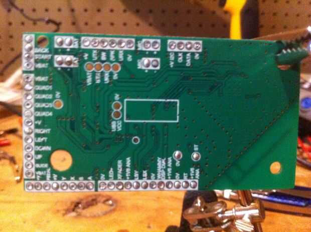 El interior es bastante sencillo. hay un tablero grande que tiene conexiones de pad de botón, una pequeña tabla rectangular soldada a él (tal) con cerca de 20 pines y varios consejos poco alimentados por cables de cinta.