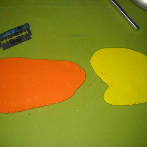 Preparar dos piezas planas de arcilla naranja y amarilla.