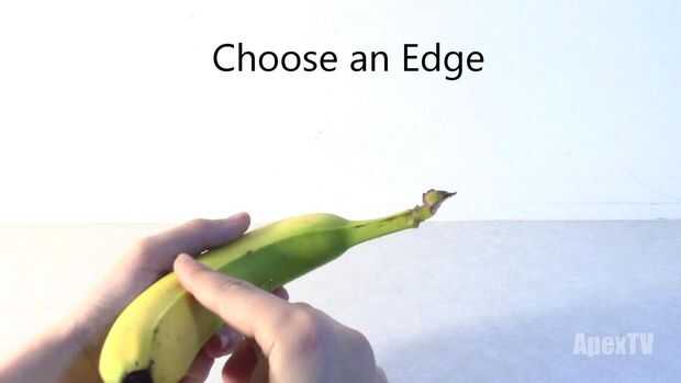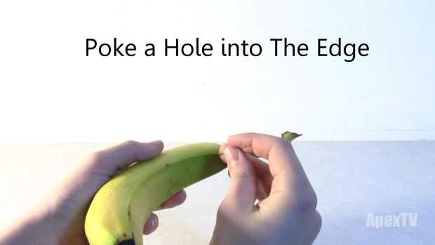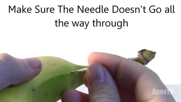 Elegir qué borde del plátano que le gustaría trabajar con y hágale un agujero en él. Tenga cuidado de que no empujar la aguja a través de todo el camino.