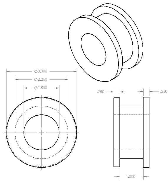 Para el anillo interior que necesita para empezar con un trozo de madera que es 3.5" por 3.5" por 1.5" de espesor. Si usted toma un 2 x 4 y cortar a 3.5" largo es el tamaño adecuado (recuerda que un 2 x 4 es realmente 1.5" por 3.5"). Este montaje en el torno de la misma manera para el exterior de la raza (porque es dos veces tan grueso como la última pieza usted puede encontrar que usted necesita para apoyar el extremo de la pieza con la acción de la cola), a continuación, convertirlo a 3" de diámetro. Después de que marque el centro de la pieza, debe ser. 75" de ambos lados de la pieza. Luego en el centro de la corte hasta el diámetro del centro es de 2.25", y la fosa es 1" de ancho. Ahora usted puede perforar un agujero en el centro de la carrera interna para que se vea más como un cojinete.
