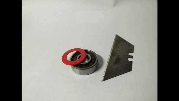 Con su navaja, suavemente Levante el protector de cojinete de la raza interno.