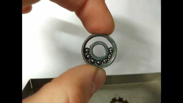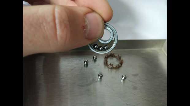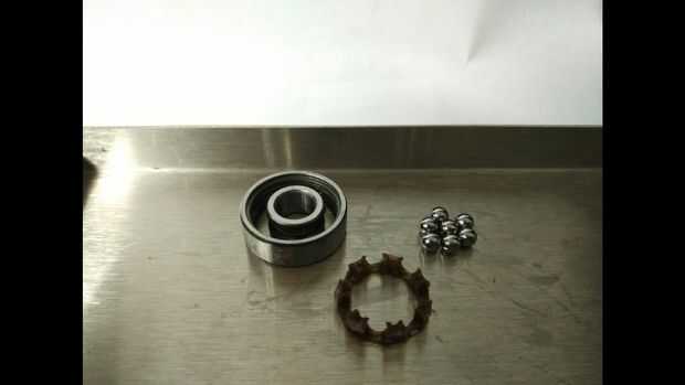 Asegurarse de coger los rodamientos de bolas en la bandeja, levantar el anillo interior hacia arriba, permitiendo que las bolas de abandono.