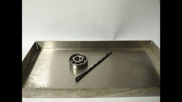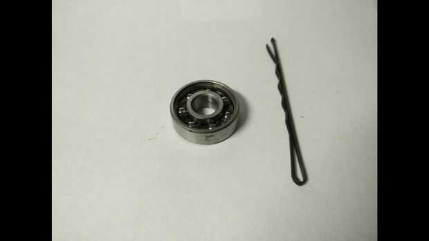 Tomar el cojinete en una mano, perno de pelo en el otro y suavemente empuje el retenedor hacia fuera. Asegúrese de que trabajar sobre la bandeja ya que existe la posibilidad que los rodamientos de bolas se abandonan.
