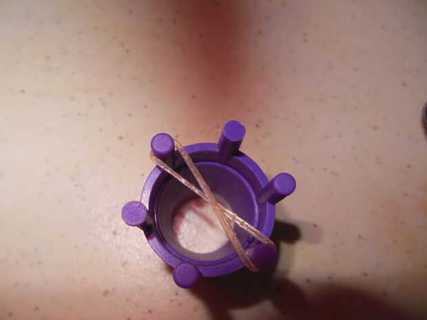3. Gire la banda de goma que pone en la clavija 1.