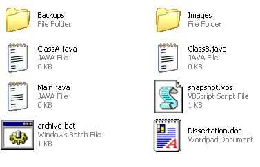Excepto que como un archivo llamado "archive.bat" en el directorio que contiene los archivos para copia de seguridad o descargar heres-uno--hace-anterior por debajo y en el siguiente paso podrá personalizar a sus necesidades.