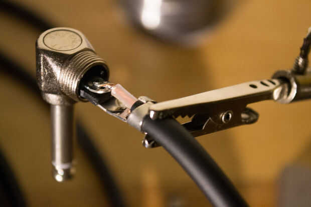 compra cables pedal de efectos es un dolor. Son caros y generalmente hechos barato, a menos que la primavera para las unidades más costosas (sí, me quejo sobre el gasto como diez dólares). Los kits de hacer su propia son un poco mejores, pero esas conexiones solderless nunca trabajan para mí. Así que hice unos cuantos para mí, con calidad Mogami cable y hardware de Switchcraft. Estos vinieron a unos $5 cada uno, son a prueba de balas y fueron un pedazo de pastel para construir! Si se le puede soldar puede hacerlas demasiado y ahorrar unos cuantos dólares para cuerdas de guitarra y cosas!