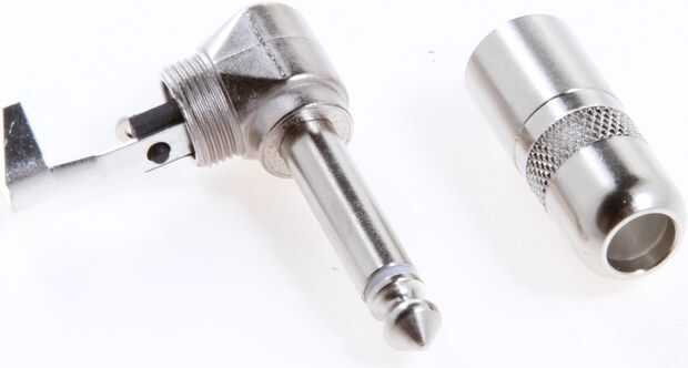 También necesitarás algunos conectores de ángulo recto para el final. No se moleste con estéreo, usted apenas necesita mono. Te recomiendo Switchcraft 226para calidad, América hizo niquelado plateado latón conectores que son fáciles de soldar. Compré un pack de 8 en ebay y salían alrededor de $3 o $4 cada uno, pero usted puede hacerlo mejor si usted compra más!