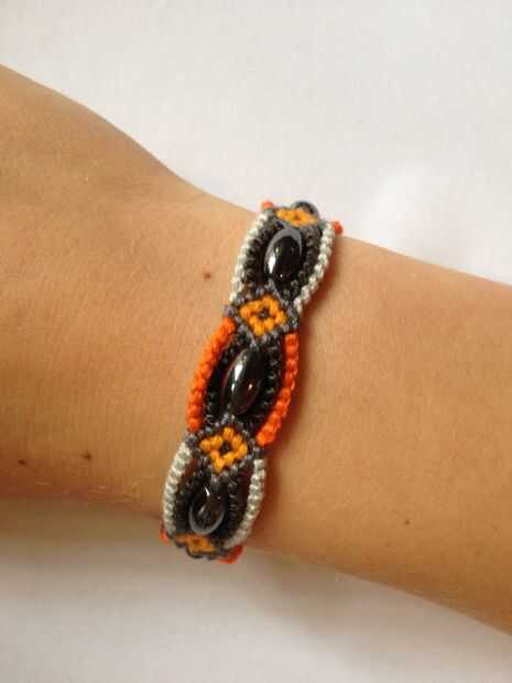 He hecho estas pulseras con hilo y abalorios. La cuerda era originalmente un color marrón claro. Para teñirlo yo empapado en un tarro de agua caliente con algún café y bolsitas de té. Dejé la guita remojar por unos días tenían que aclararlo todo vari