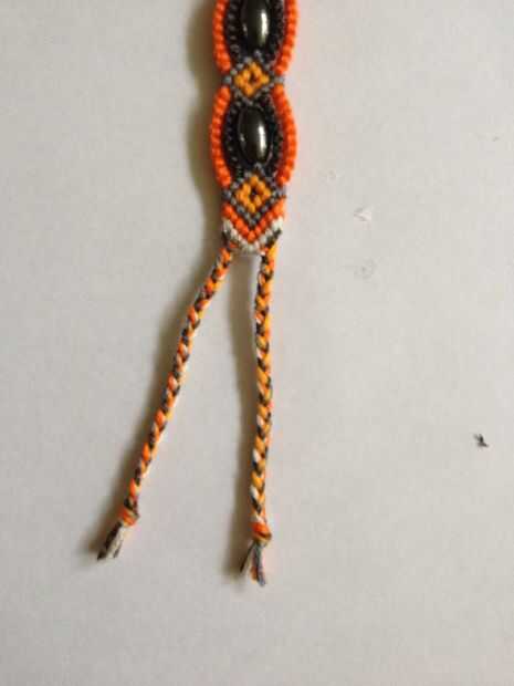 He hecho estas pulseras con hilo y abalorios. La cuerda era originalmente un color marrón claro. Para teñirlo yo empapado en un tarro de agua caliente con algún café y bolsitas de té. Dejé la guita remojar por unos días tenían que aclararlo todo vari