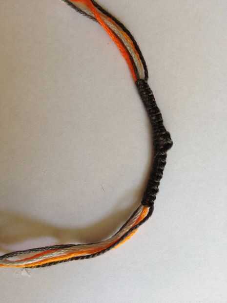 He hecho estas pulseras con hilo y abalorios. La cuerda era originalmente un color marrón claro. Para teñirlo yo empapado en un tarro de agua caliente con algún café y bolsitas de té. Dejé la guita remojar por unos días tenían que aclararlo todo vari
