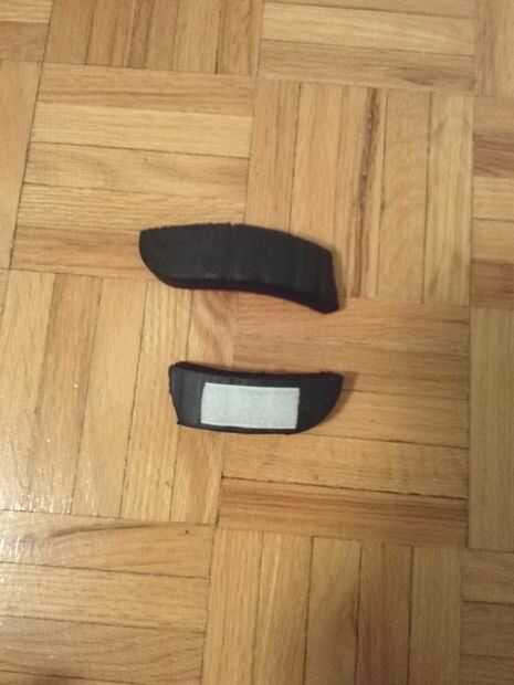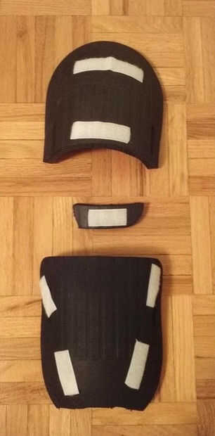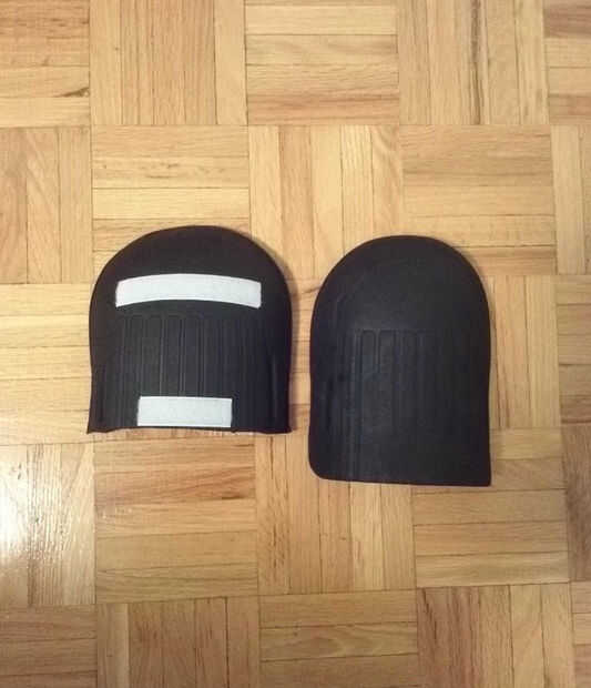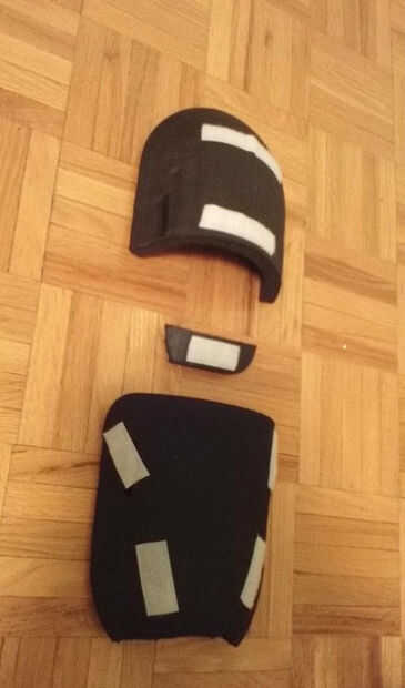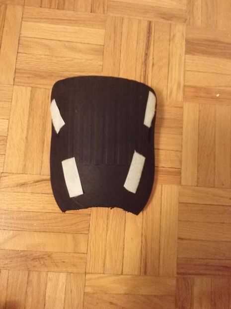 Una manera fácil de obtener el cierre de Velcro en el lugar correcto es colocar la tira de longitud coincidente sobre su contraparte en la rodillera. Luego, coloque con cuidado las rodilleras de espuma que desee y presione firmemente para evitar el lado adhesivo adhesivo del Velcro para adherir a la espuma.