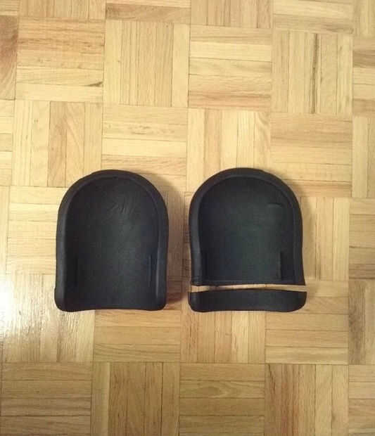En la primera imagen muestro donde corté la almohadilla de espuma. Específicamente, cortar para caber de poco más de la rótula a donde está la bisagra dentro de la almohadilla de rodilla de plástico. Luego, con el material eliminado, opté por añadir un bloque de espuma pequeño adicional que fue cortado del material eliminado como ver imágenes 2 y 3. En la imagen 6, hacer los ajustes en una almohadilla de espuma de longitud completa para eliminar algunas de la parte redondeada "superior" de la espuma para encajar cómodamente alrededor de mis espinillas. la segunda a pasado y pasadas las imágenes muestran la orientación en la que instalar los insertos en las rodilleras.