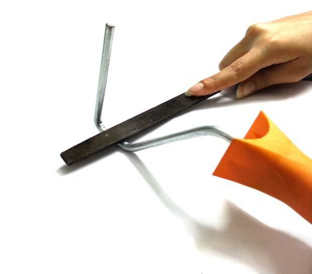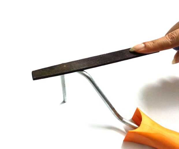 Coge un archivo y aplane ambos lados de la manija justo antes de la curva de 90 grados. Esto permitirá que el acrílico vicio que vamos a hacer en el siguiente paso para aferrarse firmemente.