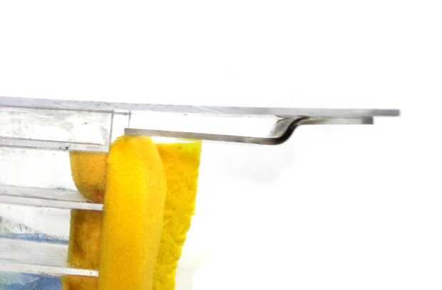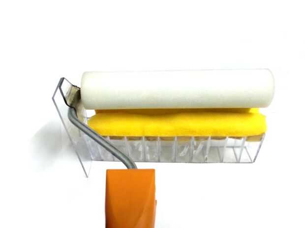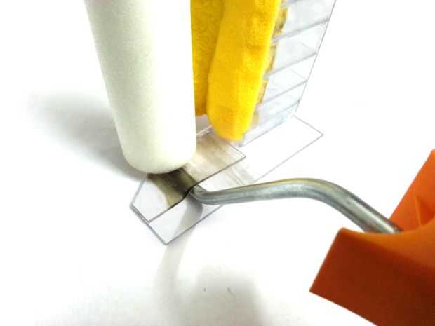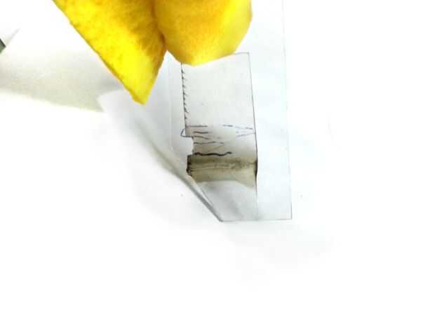 Como se muestra en la imagen 2 º y 3 º, corte de la esquina de la pieza de acrílico para que no golpee la superficie cuando se utiliza el rodillo.