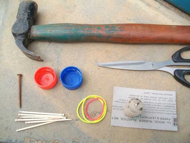 2) un clavo para hacer orificios en las tapas