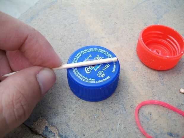 Medir un trozo de palillo de lo dientes... por lo que es el diámetro de la tapa de la botella...