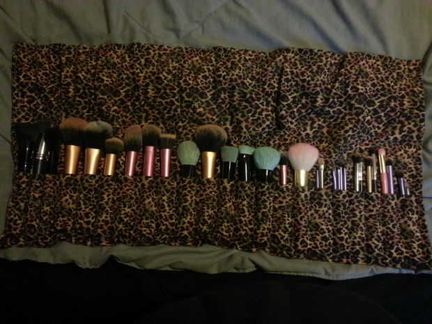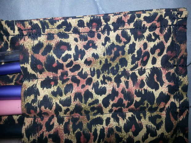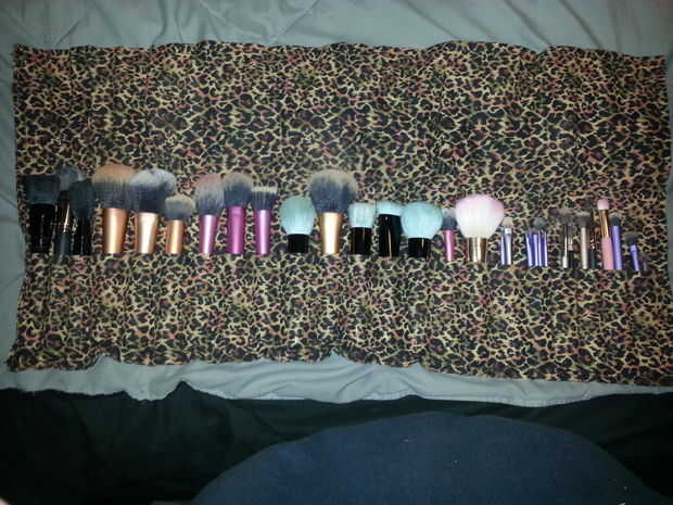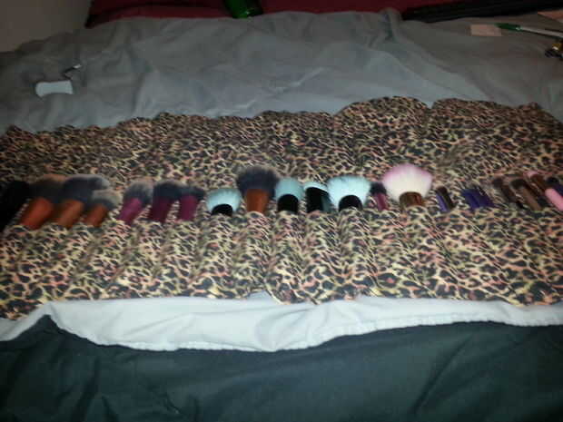 Esto fresco ruede para arriba la caja de maquillaje que hice para almacenar y transportar pinceles de maquillaje. Se hace fuera de una tela patttern un guepardo impresión es un material más fuerte. Esto es un montón de pinceles de todos los tamaños diferentes. Esto es bastante convient todo en un solo lugar y cabe en una cartera o bolso. Todavía cabría añadir una correa a él para mantenerlo enrollado pero esto parece permanecer enrollada hasta la multa lo es. Si usted quisiera que podría hacer la parte posterior un color diferente, que decidí hacerlo de la misma tela. Esto era bastante fácil de hacer si usted tiene alguna habilidad usando una máquina de coser. Usted puede hacer este mismo tipo de rodillos para herramientas, cosméticos, archivos, desarmadores, muchos otros cosas esta es hecha para los cepillos.