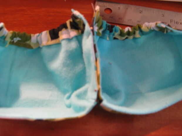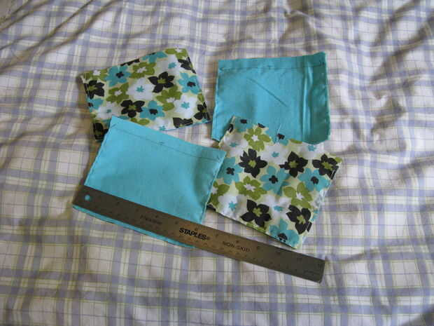 Para un bolsillo terminado tamaño de aproximadamente 3" de alto por 4" de ancho por 3/4" profundidad, que empecé con 5" x 6" rectángulos de dos telas cosidas bueno de lados en, con uno de los bordes más abiertos.