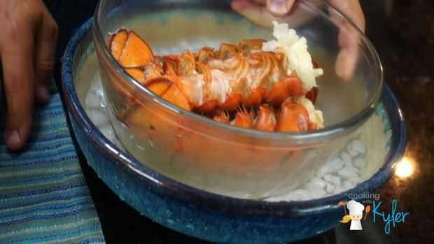 colas de langosta de vapor durante unos 7-8 minutos, luego retire y dejan enfriar.