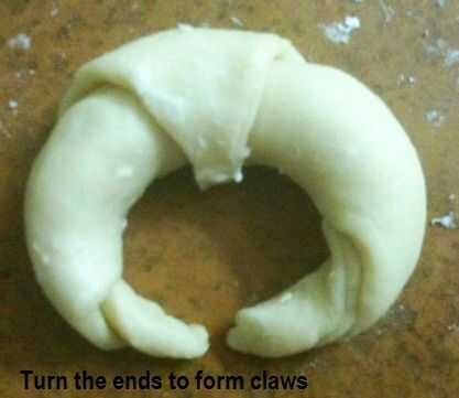 Comenzar a rodar la parte inferior hacia los lados... luego rodar hacia arriba... doblar las esquinas a las garras de forma... como un cangrejo;-).