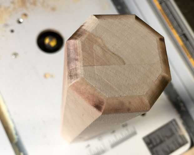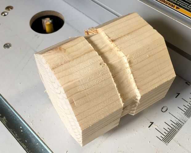 Para la varilla octogonal stumpy, necesitará hacer un surco en el centro para sostener el paracord. La varilla se termina mirando como un yo-yo. Que hice con un pedacito cuadrado sobre mi mesa de la fresadora pero sería fácil de hacer en la Sierra de mesa, también. Cortar la ranura de 3/4"(18 mm) de profundidad y unos 3/4" de ancho, tomando aproximadamente 1/8"(3 mm) hacia fuera a la vez.