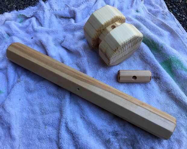 Arena, previamente teñido, manchado y recubrimiento claro (3 veces) los rodillos y ligeramente lijadas entre capa y capa. Los rodillos son muy lisos como resultado pero hay un montón de agarre gracias a ellos ser octogonal en sección transversal en lugar de redonda.