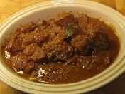 Aquí está el plato terminado de Rogan Josh. Observe cómo cambió completamente color durante el proceso de guisado.