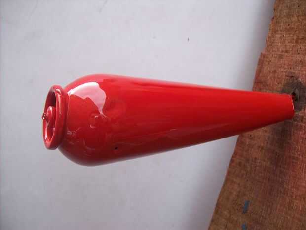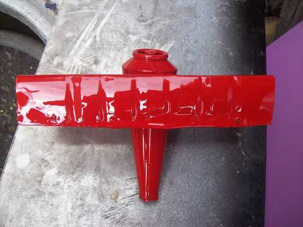 Lija la superficie limpiala con diluyente y aplica primer, base y finalmente la pintura, yo aumentando Rojo cereza marca Krylon.