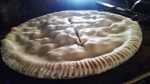 Ahora toma 2 de tarta y colocar encima del relleno. Utilizando un tenedor presionar los bordes completamente alrededor de la tarta entera. Entonces usando un cuchillo afilado corta cuatro ranuras en la parte superior en casi como una forma de "X" incompletas. Para mezclar una clara de huevo y cepille la parte superior de la tarta y espolvorear unas semillas de sésamo para terminar su resplandor del pie. Coloque en el horno a 450F durante unos 20 minutos de hasta arriba es de oro!