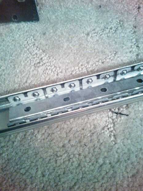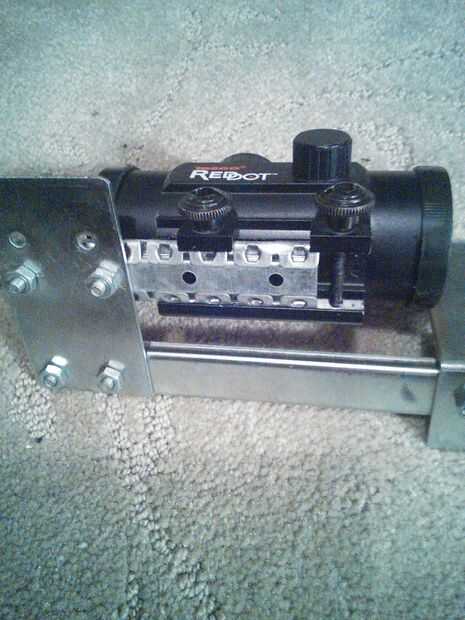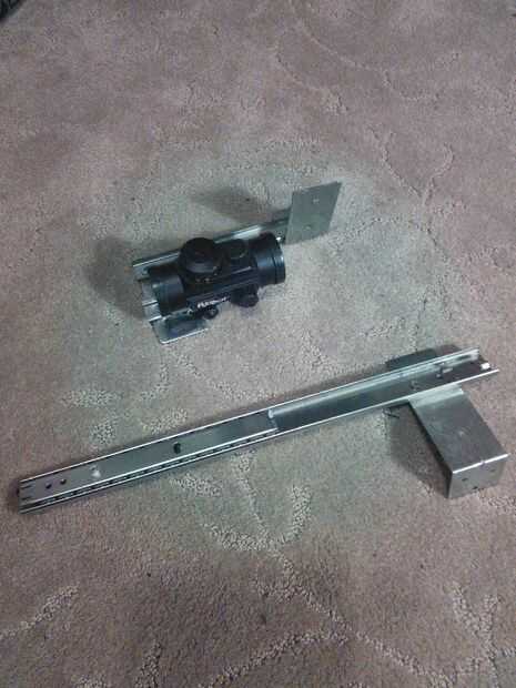 Fue el paso más difícil para mí porque tenía que hacer un carril que funcionara para mi visor de punto rojo que utiliza un montaje de estilo Weaver. Quería mantener barato así que hice mi propio pero se puede comprar en una tienda de deportes local o fuera de eBay. Usé una viejo diapositiva del cajón que tenía puesta alrededor. Tomé la pieza deslizante interna que tenía todos los rodamientos de bolas en él y doblar los lados en un triángulo