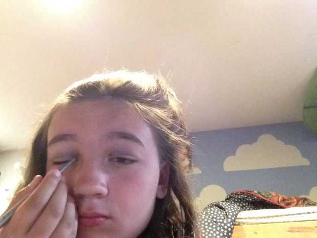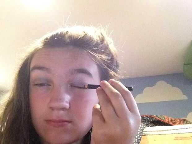 Estoy usando dos Wet ' n ' paletas de sombra de ojos salvajes: mi color beige y marrón tiene la etiqueta engomada arrancó, por lo que no sé el nombre, pero mi color de rosa y oro es el Wet ' n ' Wild 334 estoy recibiendo Sunburned paleta de sombra de ojos. Yo soy capas como se muestra en las fotos. Añadir el delineador de ojos (hacer un ojo de gato si quieres) y máscara de pestañas.