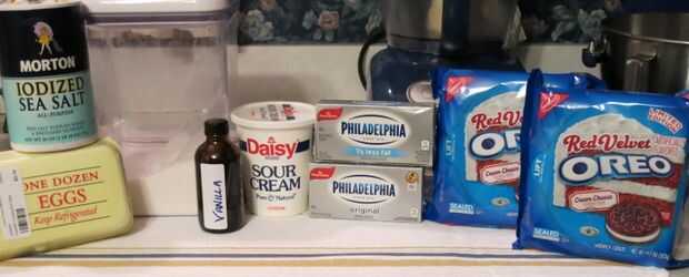 25 galletas Oreo de terciopelo rojo (necesitarás 2 paquetes para esta receta, las galletas de Oreo de terciopelo rojo vienen 22 a un paquete. Galletas Oreo regular puede ser sustituida.)