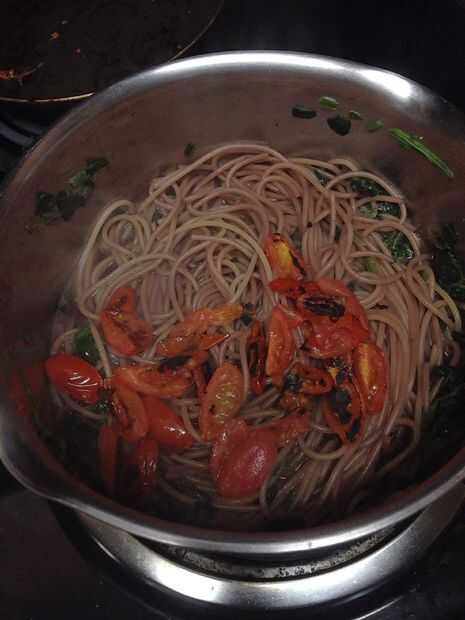 Agregar en la pasta para el vino y la mantequilla. Añadir las especias y el azúcar. Luego agregue el tomate espinaca y mozzarella. Deje cocinar durante 8-10 minutos revolviendo frecuentemente. La mayoría de los vinos debe ser absorbida.