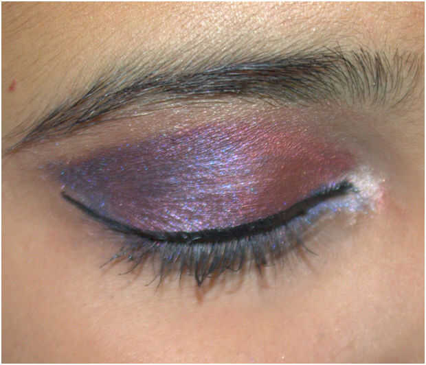 1. en primer lugar vas a cebar y Fundación se aplica a la cara.2. luego va a ojos que vas a aplicar una púrpura el la tapa y el pliegue del ojo asegurándose de que se mezcla hacia fuera y no dejó líneas duras.3. entonces va con un negro que se va a a