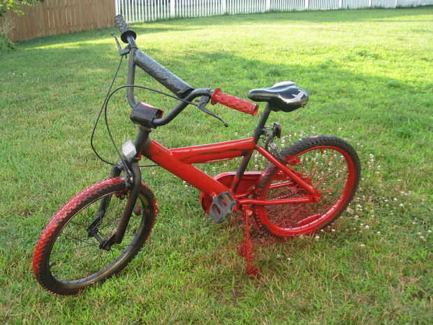 aquí es una manera de hacer una pantalla animada de Halloween, usando sobre todo cosas que ya tienen alrededor de la casa. Funciona la pantalla con un pequeño motor eléctrico conectado a la rueda trasera de mi bicicleta, y ataduras a los pedales tir